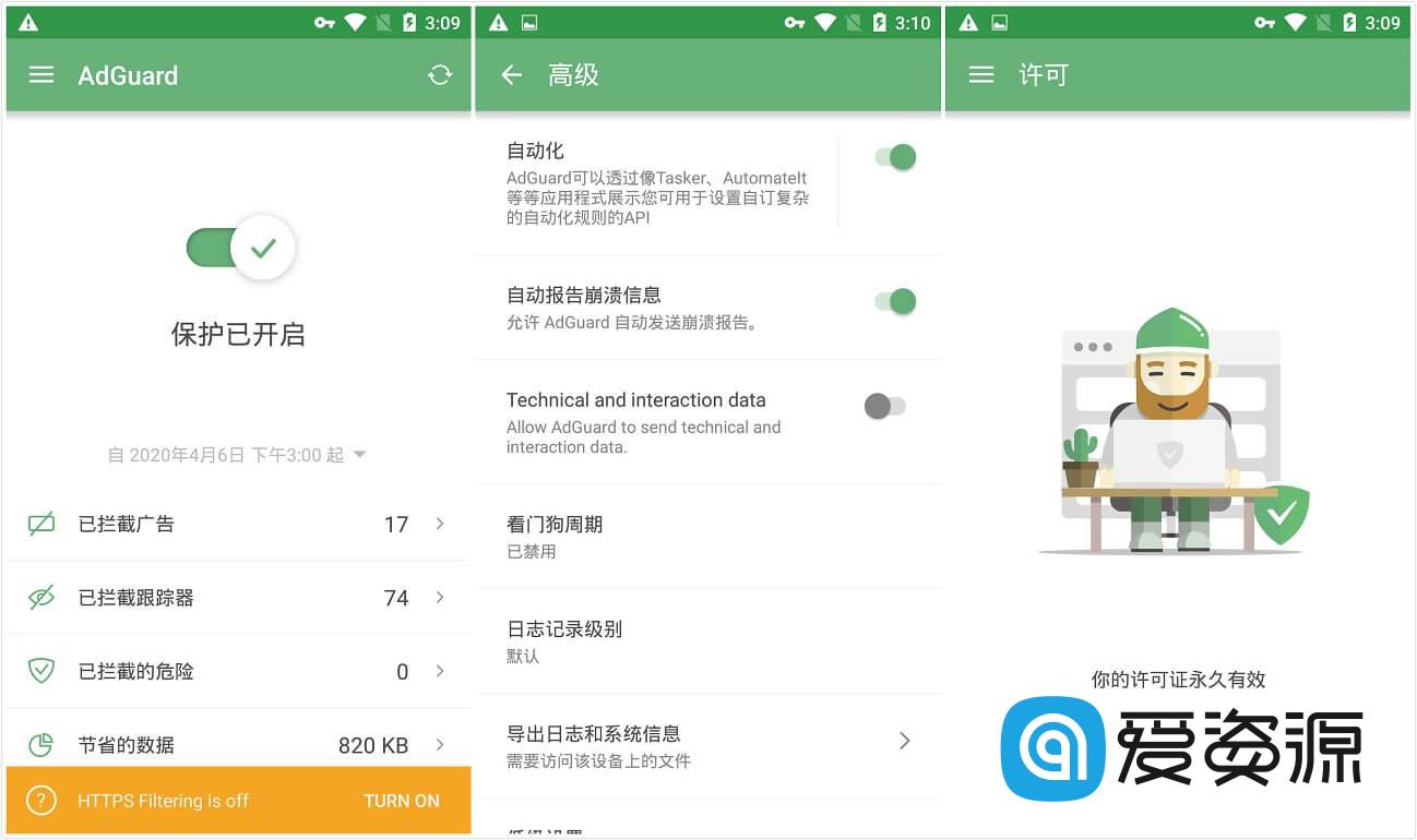 AdGuard中文版广告拦截器是一款最受欢迎的广告拦截程序.Adguard手机版Adguard安卓版无需ROOT权限,可以拦截所有应用和浏览器的广告.具有广告内容拦截跟踪器(包括:广告过滤器,社交过滤器,隐私过滤器,安全过滤器,自定义过滤器),DNS过滤,HTTPS过滤,节省应用流量数据管理以及隐身模式保护个人安全隐私.